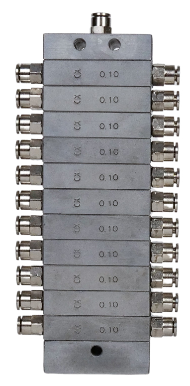The progressive distributor can be supplied already assembled or to be assembled. The number of dosing elements that make up a distributor varies from a minimum of 3 to a maximum of 10.