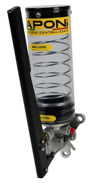 The reservoir is manufactured from transparent polycarbonate to allow user easily check the level of grease. The volume of the reservoir is 0.8 liter.